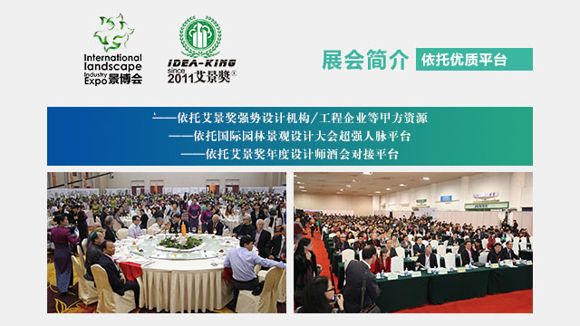 艾景国际园林景观规划设计大会作为景博会的最重要的品牌活动之一,已经成为世界各地设计师分享前沿设计理论,建筑及景观设计机构品牌展示的重要平台,也成为园林景观材料商首选的新产品、新材料新技术推广最理想的平台。